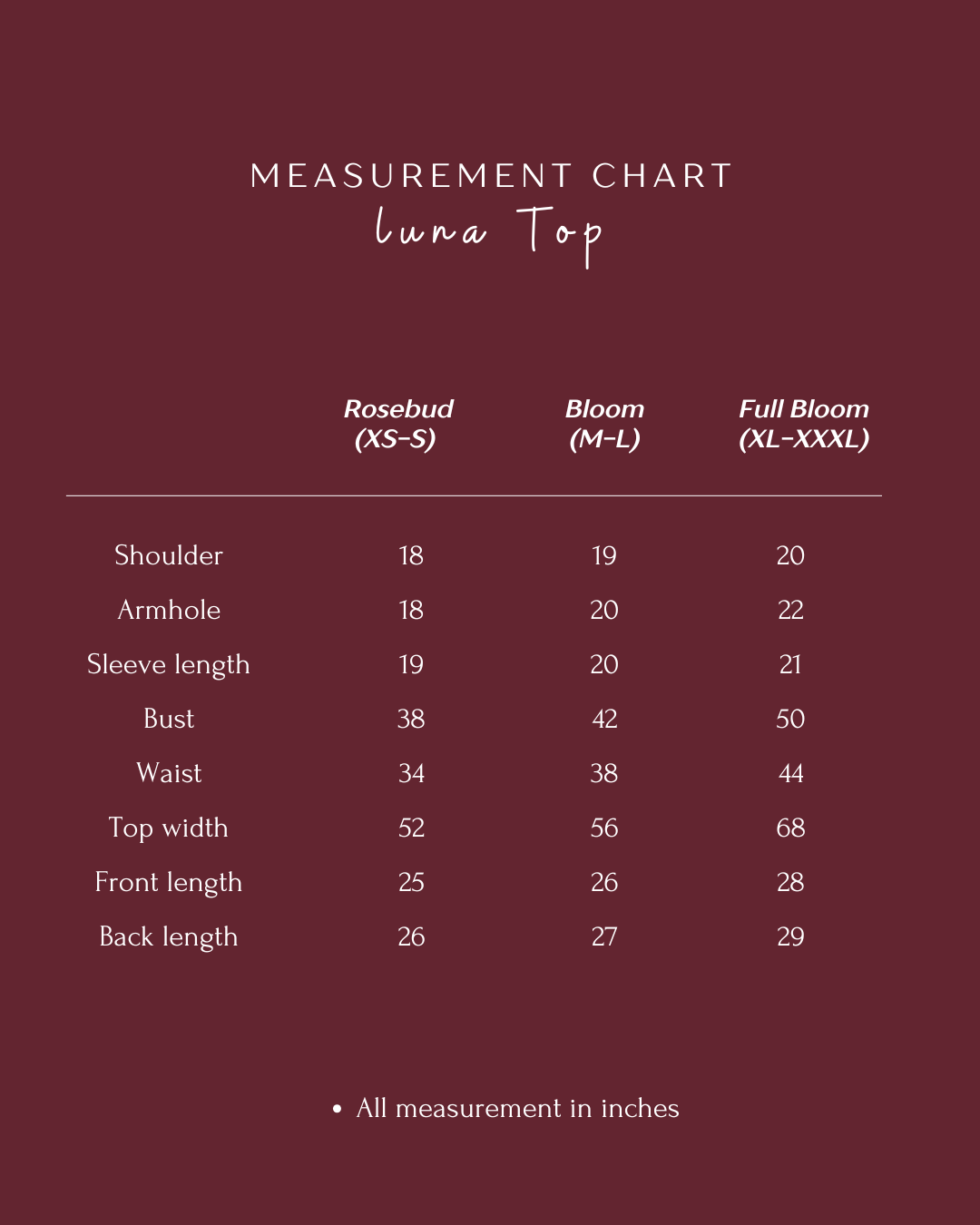 - Size : XS - XXXL (Rosebud, Bloom & Full Bloom)